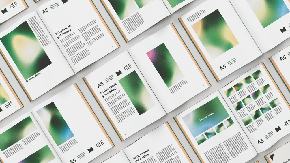 A5 Open Book Top Down Grid Mockup